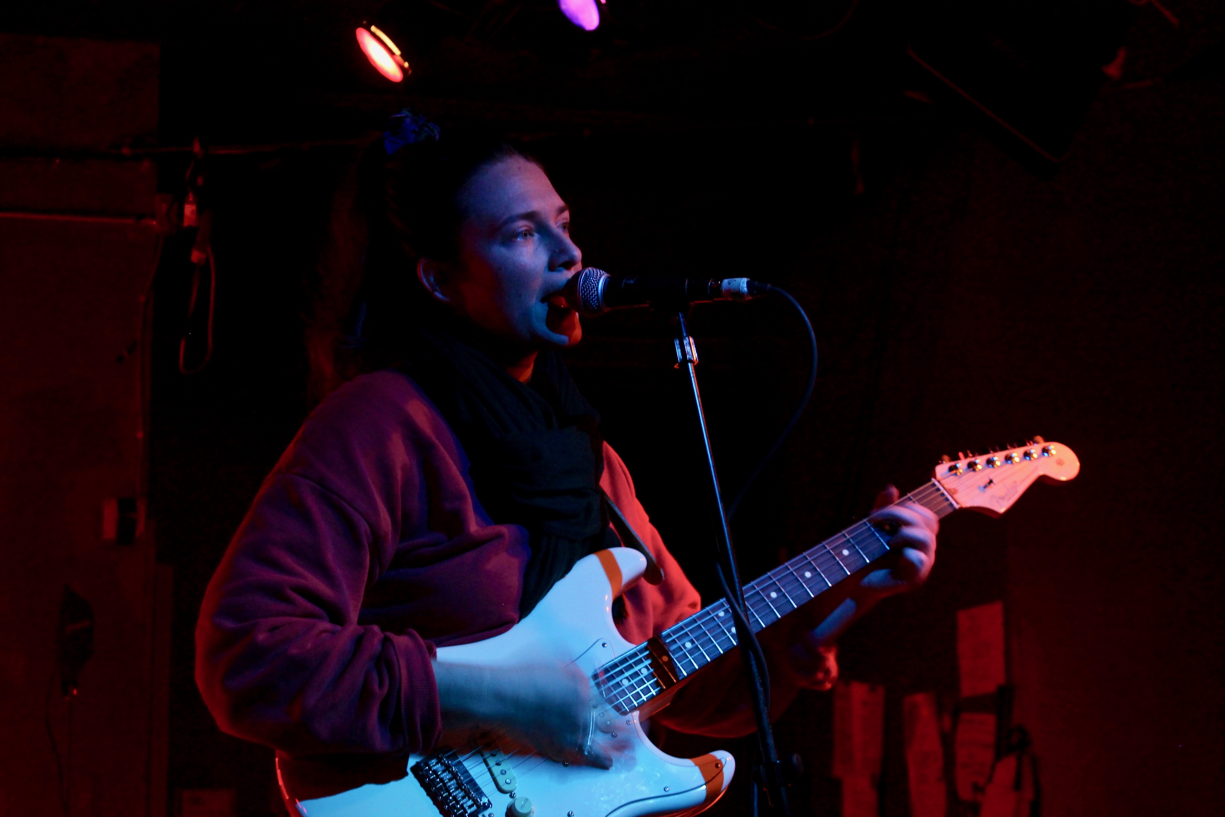 “This song is about a karaoke bar in Big Sur, California,” Sarlé told the crowd as she dove into the title track off her LP. The chord changes and her rhythmic vocalization made the track feel bigger and more produced than a one-person show would be expected to deliver. The track ended with the tempo slowing, and one last harmonic.